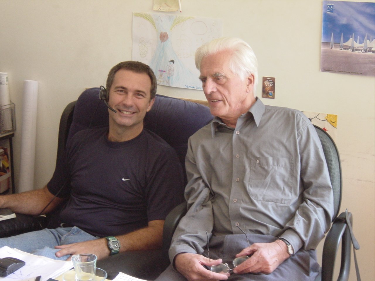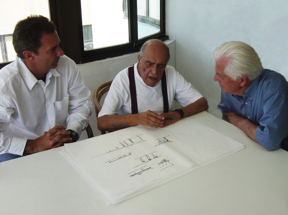 Intermediado por Nelson Fiedler, o encontro entre Frei Otto e Oscar Niemayer onde puderam falar sobre a leveza das tensoestruturas e das cascas em concretro armado. muitos aspectos da vida foram tratados como música, urbanismo e amor..